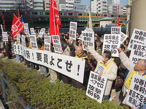 (写真 春闘第4波ストJR貨物の定昇廃止攻撃に3・19動労千葉スト(JR貨物本社前)