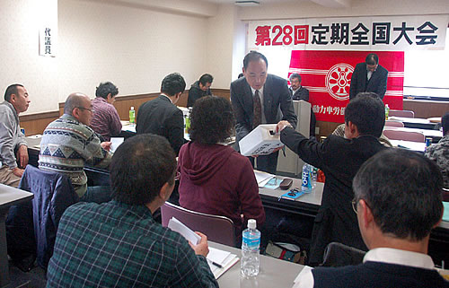 動労総連合は12月8、9日、第28回定期全国大会を千葉市内で開いた。討論では、多くの代議員が外注化後の職場の状態を怒りを込めて報告し、偽装請負の実態があらためて明らかになった。貨物の代議員は賃下げへの怒りを語り、14春闘でも本社抗議行動を設定してほしいと訴えた。大会は運動方針を全員で承認し、スト権を満場一致で確立した。