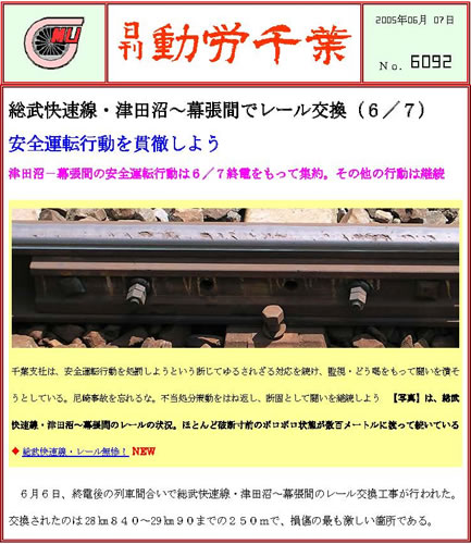 動労千葉が取り組んできた船橋事故闘争、レール破断問題、幕張事故問題をめぐる反合理化・運転保安闘争こそ大きな課題です。