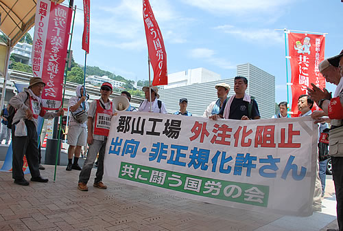 本来の仕事をさせながら、外注先の労働者にわずか3か月の外注業務の教育・養成で外注化を強行するという安全無視の外注化を阻止するため、郡工支部は闘いの組織化を開始した。組合の違いを越えて、正規と非正規が団結を求めて闘い始めた。橋本書記長は「錆びついた歯車が油を得てギシギシと回り始めた」と実感を訴えている。福島200万人県民の生きるための闘いでもある。その根底的な息吹きは、熱海大会情勢に対し現場組合員と青年労働者の歴史的決起を牽引するものだ。