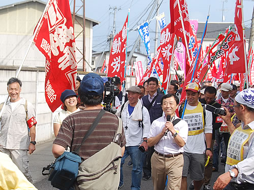 さて、職場の反応ですが、朝一番、更衣室で「きのう、見てたんだけど、何人いたの? 助役は250人だって言ってたけど、もっとたくさんいたよな」。職場では、「きのうの朝の点呼で、『興味本位でデモを見に行くことのないように』『デモを見るためにフェンスに近づかないように』って、指示があった」。「職場によっては『デモを見ているものは現認する』という指示があったみたいだ」。「そんなこと言われたって、みんな見てたよ。管理者が並んでピリピリして、見張りやってたけど、みんなで見たよ」。「若い連中もおっかなびっくり見てた。堂々と見てた若いやつもいた」。エルダーの先輩からは「ネットでみたよ。YouTubeで検索したらすぐ出てきた」。みんな注目していたのが分かりました。会社側の緊張感も分かりました。