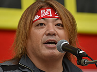 集会を呼びかけた3労組の各代表が発言した。全国金属機械労組港合同の中村吉政委員長、全日建運輸連帯労組関西地区生コン支部の西山直洋執行委員、動労千葉の田中康宏委員長が鮮明な決意を述べた(別掲)。