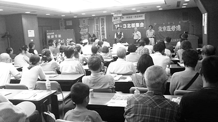 さらに、自治体と郵政現場から、委託化や過労死攻撃に対する闘いの決意が述べられ、「日の丸・君が代」強制と闘う教育労働者からメッセージが寄せられました。最後に一陽会労組、東京北部ユニオンアミーユ支部などから、職場に根を張って反合理化闘争を闘っている報告と決意がありました。