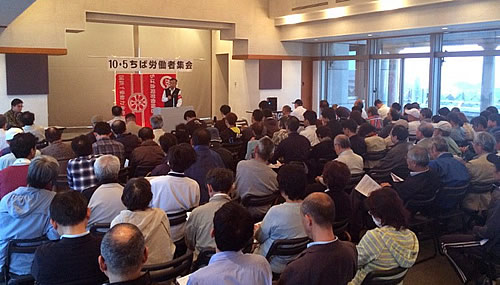 三里塚芝山連合空港反対同盟、裁判員制度に反対する千葉県実行委員会、原発なくせちばアクション、ちば・星野文昭さんをとり戻す会も参加、発言しました。労働組合が軸に座り広汎な陣形ができたことは大きいです。