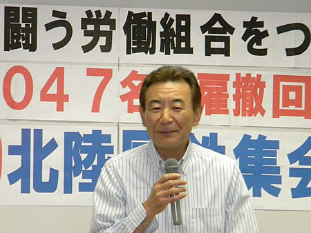 闘う仲間からのアピールでは、富山通運運転助手アルバイトの解雇撤回闘争を闘う当該の北陸ユニオン副委員長が、「会社のいいなりにならないからと労働者を使い捨てることは許せない。自分たちの闘いが北陸の労働者の〝希望の星〟となるように闘い続けたい」と中央労働委員会闘争への支援共闘を訴えました。
