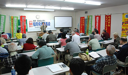 福岡市内で国鉄闘争全国運動・九州主催で「戦争・民営化と闘う福岡労働者集会」を開催しました。11月労働者総決起集会に向かって時代認識と国鉄・反原発・星野奪還を正面課題として提起し、総決起を訴えました。
