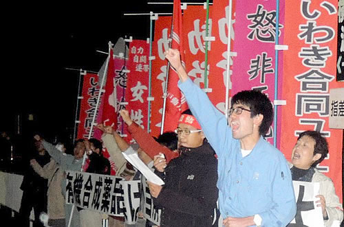 10月31日、いわき合同ユニオンは、福島県いわき市常磐湯本に工場のある有機合成薬品工業株式会社に対し、青年労働者A君の解雇撤回を求める抗議行動に立った。今年大学を卒業し4月から常磐工場で働き始めたA君は、一生懸命仕事に励んできた。しかし、パワハラで解雇