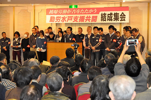 ※表紙の写真は、3・15動労水戸支援共闘結成集会で、演壇に並んだ動労水戸組合員と家族(東京・上野)