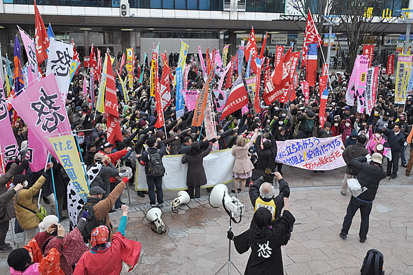 (写真 3・11反原発福島行動に結集した1100人がデモ解散点の郡山駅前に集合!)