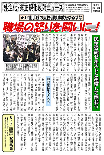 原発再稼働と鉄道インフラ輸出、労組破壊と外注化、そして「第二の分割・民営化」に突き進むJR資本に対して、われわれは外注化阻止―非正規職撤廃決戦を叩きつけ、一切の被曝労働拒否の闘いを打ち立てた。