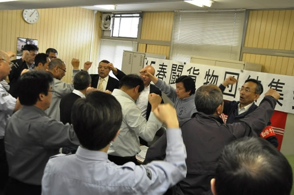 貨物会社は3月1日から「手当等の見直し」として諸手当の削減を強行しました。「労働者との合意」=日貨労の裏切りがあれば、賃金の一方的な変更もいくらでも出来るというとんでもないことが強行されたのです。日貨労革マルは、東日本の労務政策の変更に震え上がり、鉄道事業部門の黒字化のために「血を流し、汗を流す」と自らの生き残りのために、分割・民営化の時と同じく現場組合員を資本に差し出したのです。