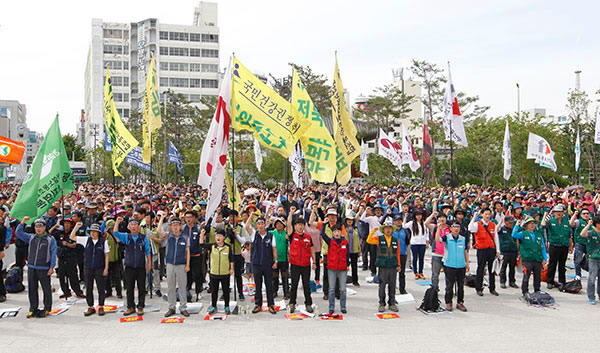 1980年5月に韓国で闘われた光州蜂起の35周年を迎え、民主労総は5月17日、蜂起の現場となった光州市内の広場で労働者大会を開いた。光州市民を虐殺した戒厳軍の銃剣は今日、パククネ政権と資本による整理解雇と労組破壊の嵐となって労働者を襲っていると、この攻撃と闘う決意を明らかにした。