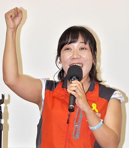 動労千葉を先頭にした日本の労働者と民主労総との国際連帯活動も、すでに12年余になります。その端緒をつくり出したのは、20周年を迎えるこの8・15集会です。民主労総から発言されたキムジンスク・ソウル地域本部女性委員長は、英資本テスコ傘下の大型スーパー・ホームプラスで労働組合結成に参画し、10人から始めた組織化はいまや2500人にまで広がっています。その経験から打ち出される非正規職撤廃と並ぶ「最低賃金1万ウォン」の要求は、パククネ政権が強行している「労働構造調整」の根幹と対決する闘いであり、パククネ打倒闘争そのものの柱をなす闘いだと感じられました。民主労総との国際連帯は、さらなる深まりと広がりを築いています。集会翌日には、合同・一般労働組合全国協議会との間で、より濃密な議論・交流も行われています。