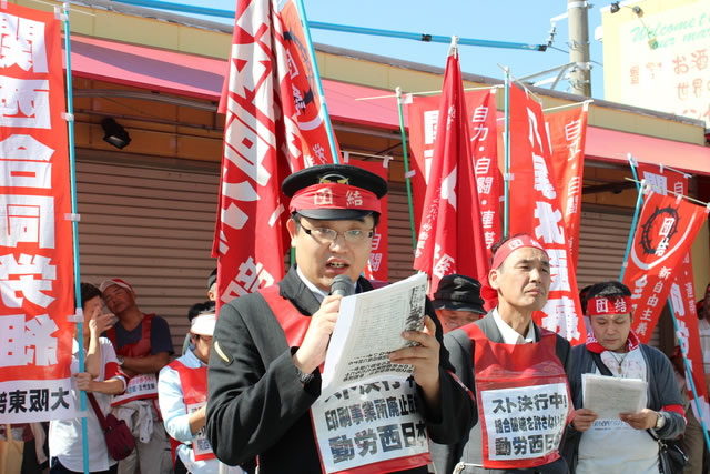 動労西日本の中西剛副委員長は大阪府の四条畷駅で、10月18日午後1時から勤務終了時までと19日の終日、指名ストライキを貫徹した。JR西日本は、組合活動をやらせないために中西副委員長の勤務シフトを押し付けるなどのパワハラを繰り返してきた。さらに年休はく奪などの組合活動妨害への抗議だ。