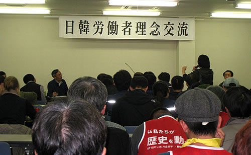 田中委員長の話に感銘を受け体中から熱が発散しています。 日本で労働改悪が行われ資本の利益になるような成功をもたらした時、韓国でそのまま行われるということがあります。