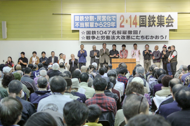 国鉄闘争全国運動の呼びかけで「国鉄分割・民営化で不当解雇から29年―2・14労働者集会」が、東京・すみだ産業会館で620人の結集で開催された。同日、北海道、福岡、広島、郡山、新潟、名古屋、沖縄で、15日には大阪でも国鉄集会が開催された。