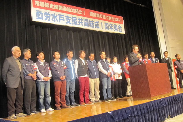 全国労組交流センターに結集するみなさん、福島圧殺の攻撃である常磐線全線開通を動労水戸と共に絶対止めましょう。動労水戸は、いわき市・平支部事務所を拠点としてJR労働者・地域の労働者住民の怒りと一体で必ず新たな決起を作り出したいと思います。3月21日開催された動労水戸支援共闘の一周年集会の成功を出発点にして頑張ります。共に闘いましょう。