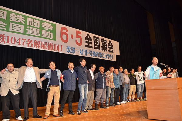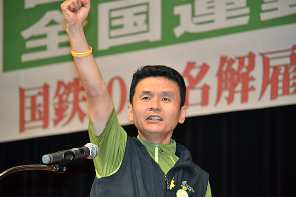 目の前で労働法制の根本的解体が進められている。「正社員ゼロ・解雇自由」は、もうひとつの改憲攻撃だ。これは分割・民営化の直接の継続だ。国鉄改革法と労働者派遣法は86年、同時に施行された。われわれは30年間これに抵抗し、ギリギリのところで押しとどめてきた。歴史が一回りめぐって本当の決戦が来た。