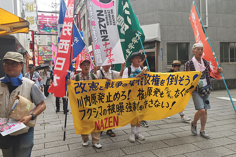 また前日の8月8日の長崎市内デモは、中華街からアーケードを通って眼鏡橋に至るデモで、昨年同様沿道の人々の熱い共感を受けました。安倍政権打倒と新たな朝鮮侵略戦争反対を参加者は心の底から訴えました。
