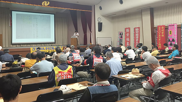 また集会では保養の報告や被爆3世の発言も行われました。長崎での保養は、今回で4回目となりますが、被爆地ナ ガサキとフクシマの連帯を求め、労働者民衆の「共同性」を取り戻す闘いの一貫として続いています。その運動の蓄積も大きな力となって、全国の支援のもとに今年の長崎保養の成功は勝ち取られました。運動の成功と発展の報告とともに、この全国の支援への感謝が述べられました。とりわけ、交流センターの労働者の皆さんの支援に心より感謝いたします。