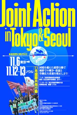 11月日韓労働者総決起闘争に向けて、韓国民主労総・ソウル地域本部が呼びかけた国際連帯行動は、日本の労働者階級へのエールだ。戦争と労働法制改悪との闘いは正念場だ。11月集会を日本の労働者の「希望」として職場から組織しよう! あと1か月を全力で闘おう!
