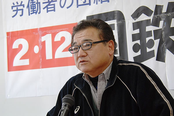 「民営化は悪だ!2・12中四国国鉄闘争集会」を岡山国際交流センターで、動労西日本、自治労倉敷、愛媛県職労、広島連帯ユニオンの4組合の呼びかけで開催し100人が集まった。冒頭、韓国ゼネストDVDを上映。自治労倉敷の百本敏昭委員長が「自治労本部は自民党と一体の方針を掲げるまでに腐りきった。本部を打倒し第2の分割・民営化攻撃を必ず粉砕しよう」と主催者挨拶。連帯あいさつを受け、テグ鉄道労組イジェシクさんの「鉄道民営化阻止を共に闘う」連帯メッセージが紹介された。