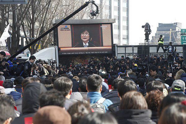 大統領弾劾が成立したのは韓国憲政史上初めてだ。憲法裁判所の宣告後、憲法裁判所前に集まった労働者市民たちは立ち上がって互いに抱きあい「ロウソクの勝利」だと歓呼の声をあげた。一方、弾棄国(大統領弾劾棄却のための国民総決起運動本部)集会の参加者たちは「大韓民国が死んだ」と国民抵抗運動をしなければならないと怒った。