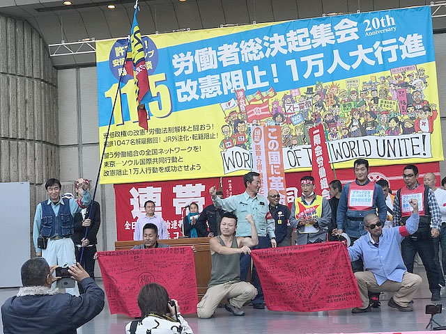 トランプ・安倍の日米首脳会談は朝鮮侵略戦争発動に向けた戦争会談です。9条改憲と労働法制改悪攻撃、連合の崩壊・打倒情勢の真っただ中で11月労働者集会が開かれました。「闘う労働組合の全国ネット・ワークを」と掲げて始まった11月集会は今年で20回目を迎えました。日本の労働者階級が自らの力で階級的労働運動の再生を切り開き、戦争を阻止する闘いにうって出る歴史的出発点を築きました。朴槿恵(パククネ)を打倒し新自由主義の社会の大変革へ進撃する韓国・民主労総を始め、アメリカ、ドイツの闘う労働組合も結集し、労働者国際連帯こそ戦争阻止の力だと示しました。