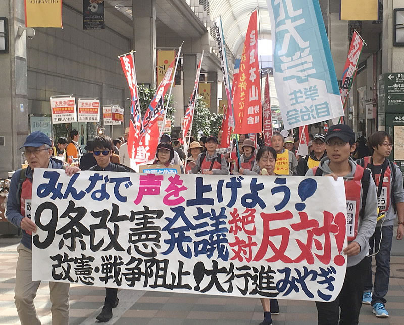 10月21日11時から、10・21国際反戦デー行動を50人の参加で行いました。最初に短い集会を行い、東北大学北門からデモに出ました。集会は、全金本山労組委員長、東北大学学生自治会、連帯ユニオンの青年労働者の3人が発言しました。中でも学生自治会は、工学部1年生の初発言。デモは小太鼓でにぎやかに、賑わう街を注目を集めて楽しく行いました。