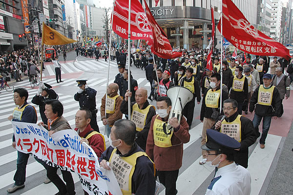 3・20イラク反戦7周年デモ動労水戸スト決起に続き1880名が渋谷デモ)