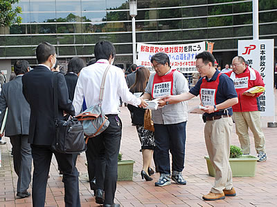 (写真 全逓労働者部会がJP労組組合員に訴え【JP労組第4回定期大会、昨年6月15日 川崎市】)