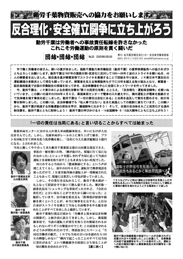 2009/6/8 付 No.26 反合理化・安全確立闘争に立ち上がろう