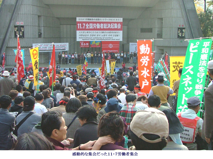 総評解散・連合結成以降、各現場で孤立しながらも頑張り抜いてきた蓄積が11・7で大きく花開いたといえるのではないか。11・7でつくりあげた大きな成果を本当に全体のものにし、参加した3600名が、それに賛同した数万規模の労働者の中に完全に定着し、団結体として固めていけば、05年の闘いの大きな展望を切り開くことが可能だ。現場に戻れば孤立した闘いを余儀なくされるけれど、みんなが勇気と自信を持って、今までと違った角度から自分の職場を、産別を、地域を見ることができるようになったことは、画期的なことだと思う。