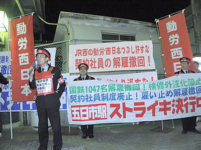 これに先立つ2月28日には、「国鉄1047名解雇撤回、検修外注化阻止! 民主党・連合政権打倒! 八尾北医療センターの民営化絶対反対、道州制粉砕!