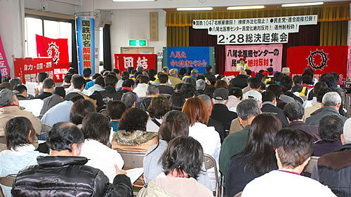 八尾北労組は解同全国連西郡支部や八尾北命と健康を守る会、地域の労働者、労働組合を「道州制・民営化と闘う共闘会議」に組織し、国鉄決戦を軸とした4大産別決戦の爆発の中で八尾北や住宅民営化絶対反対の闘いの勝利もあると闘ってきました。2・28集会全体をこの路線を貫いた感動的で力強い集会として勝ち取ることができました。特に八尾北労組の青年労働者が司会や決意表明に起ち、「八尾市がここをつぶそうとするなら、僕らはみんなの団結で絶対に闘って勝っていきたい」と、4月からの第2ラウンドの闘いに突入することを宣言したことに勝利の核心があります。