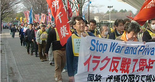 え続けてきたのが連合や全労連の体制内指導部です。その彼らの制動ももはや堤防決壊寸前です。2・13全国集会―3・20イラク反戦7周年全国集会は、その堰を切る闘いとして勝ち取られたといえると思います。