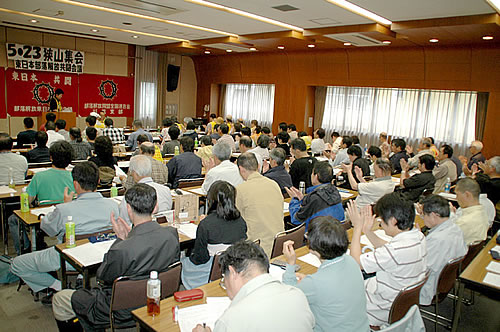 全水道会館で東日本解放共闘会議が狭山集会を行った。部落解放同盟全国連杉並支部の田中れい子支部長の「3者協議路線と対決して、狭山闘争の歴史的勝利を切り開こう」の訴えに120人の参加者が熱烈に応えた。