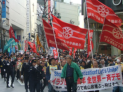 私が関わっている東京西部ユニオンのある分会では、組合組織拡大のひとつのツールとして最近新しくなった〈百万人署名〉を活用しています。署名を要請したある非組の労働者から、「職場の課題の署名だったらいつでもするのに、何で戦争がどうのとか憲法がどうのとかいう署名をやるんだ?」と言われたそうです。その時にわがユニオン組合員は「労働組合は戦争反対の活動するのは当然なんだ」と返し、「そういうものなんだ…」との答えとともに署名を獲得しています。労働組合における反戦闘争の組織化に関して、きわめて本質的な事柄を象徴するエピソードではないでしょうか。