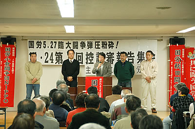 社保庁攻撃をめぐって権力・資本が最も恐れていた事態が確実に開始された。「社会保険庁の労働者525人の分限免職処分とは、政府・支配階級にとってはもう一つの国鉄1047名闘争を抱え込むような事態だ。それを政府が平然となしえたのは、4者4団体幹部が解雇撤回なき『政治和解』にゴーサインを出したからです」(沖縄公平審・羽廣憲氏の陳述書より)。