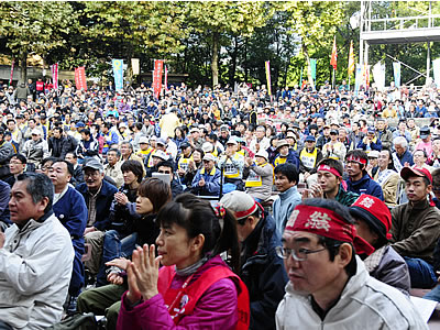 さらに、こうした「大恐慌、大失業と戦争」「民営化・外注化と労組破壊」という時代認識と階級攻防の核心をはっきりさせることで、生起する事態の本質をつかむことに成功し、闘う路線と階級的対抗軸を打ち立てることに勝利してきた点が極めて重要でした。つまり、歴史的攻撃や大事件の発生に対して動揺することなく闘い抜き、求心力を強めてきたということです。道州制・公務員労働運動解体攻撃、JR東の検修全面外注化と4・9和解反動、G20とAPEC、〈釣魚台〉と〈延坪島〉等々一つ一つの歴史的攻撃と事件を階級攻撃として明確に捉え、「団結と労働組合運動の強化」による階級的反撃を組織することができました。