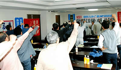 貨物の委員からは、「JALの次はJR貨物という第2の分割・民営化合理化に対して腹を据えて闘う。定期昇給延伸を許さず原則的に闘う。嘱託労働者(退職再雇用)の出向問題で申告闘争を闘う」という決意が明らかにされた。すべての課題に挑戦し組合員の評価をあおごう。