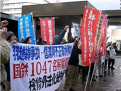 それどころか、JRはさらに外注化を進め、既成の労働組合はこれに全面協力しています。「外注化絶対反対」「労働者に事故責任はない。事故責任はJRにあり」と、JRおよび関連会社に闘う労働運動の旗を立てることが求められています。
