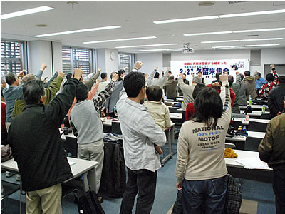 今回の大震災で明らかになったことは、私たち動労千葉派が一刻も早く体制内に取って代わらなければ、文字通り「労働者が労働組合によって殺される」ということです。私たち自身が「原則的で戦闘的な200名組合員の指導部」であることに誇りと責任を持ち、この200名との団結を強化し、その力で「三教組全組合員の指導部」へと飛躍する決意を固め、次なる闘いへ踏み出します!