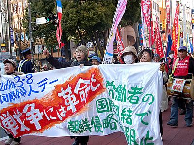 東京・アットビジネスセンター池袋駅前別館で実行委員会による「戦争には革命を! 労働者の国際的団結で朝鮮侵略戦争阻止! 3・5国際婦人デー集会」が開催。148人がエジプト―中東革命に熱く連帯し、意気高く集会とデモを勝ちとった。