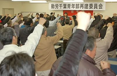 DC会館において動労千葉青年部再建委員会が発足した。平成採の仲間はこの間、青年部結成へ向け準備会を重ね、この日準備委員を発表し、青年部結成へ向け大きな一歩を勝ちとった。