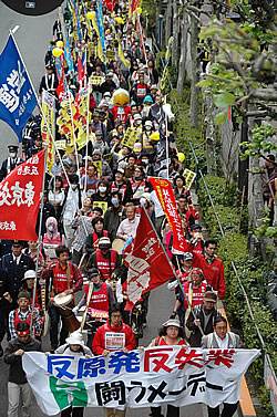 原発をつくるのも、動かすのも、そして止めるのも労働者です。労働組合が本来の姿を取り戻すことが、現実に原発を止めることにつながります。労働組合が農民、漁民、すべての住民の怒りとむすびつき、ひとつの力となって闘う先頭に立つこと、これこそ、「フクシマ」を繰り返さない道です。