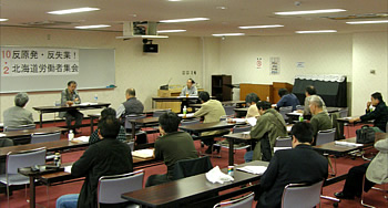 北海道労働者集会」に参加しました。2月結成の国鉄闘争全国運動・北海道の主催です。呼びかけ人で近代史研究者の伊藤晃さんの講演「3・11以後の運動に感じられる新たな運動の可能性」と、タクシー労働者からの「反原発・反失業の怒りの声を集め、社会を変えよう!」という内容の基調報告がありました。直近の9・11および9・19の反原発集会の大きな盛り上がりや、動労千葉が当局による外注化を阻止する闘いを、全力で展開して勝利し続けていることなどが引き合いに出され、集会自体、生き生きとした雰囲気となりました。
