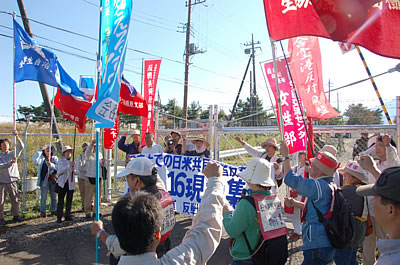反戦共同行動委員会は、北富士での18年ぶりの日米共同演習に反対する集会を忍野村忍草の民有地で開催した。女性部ほか60人が忍草部落の中心地を経由して北富士演習場ゲート前まで約4`のデモを行った。