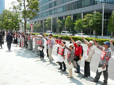 10・13判決日を単なる裁判闘争に終わらせず、3・11情勢と真っ向から立ち向かう闘争にしようと、早朝からの霞ヶ関情宣、JR東日本本社前での抗議闘争、13時半からの高裁判決、国労本部抗議闘争、夜の総決起集会と1日闘争をやり抜きました。