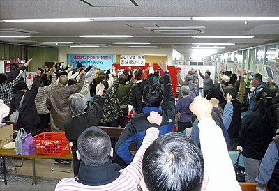 3・11集会へ向けて、野田政権との最大の攻防点は、労働組合をめぐる闘いです。野田政権の支柱である連合支配を吹き飛ばし、その内側から労働者の3・11集会への決起をつくりだすこと、このことが原発推進を打ち砕く最大の力になります。3月11日、郡山開成山球場を溢れ出る巨万の結集で、全原発の停止・廃炉を勝ちとりましょう。自分の職場の仲間に3・11福島を正面から呼びかけましょう。この日の闘いに2012年の闘いの飛躍がかかっています。全力で結集をお願いします。